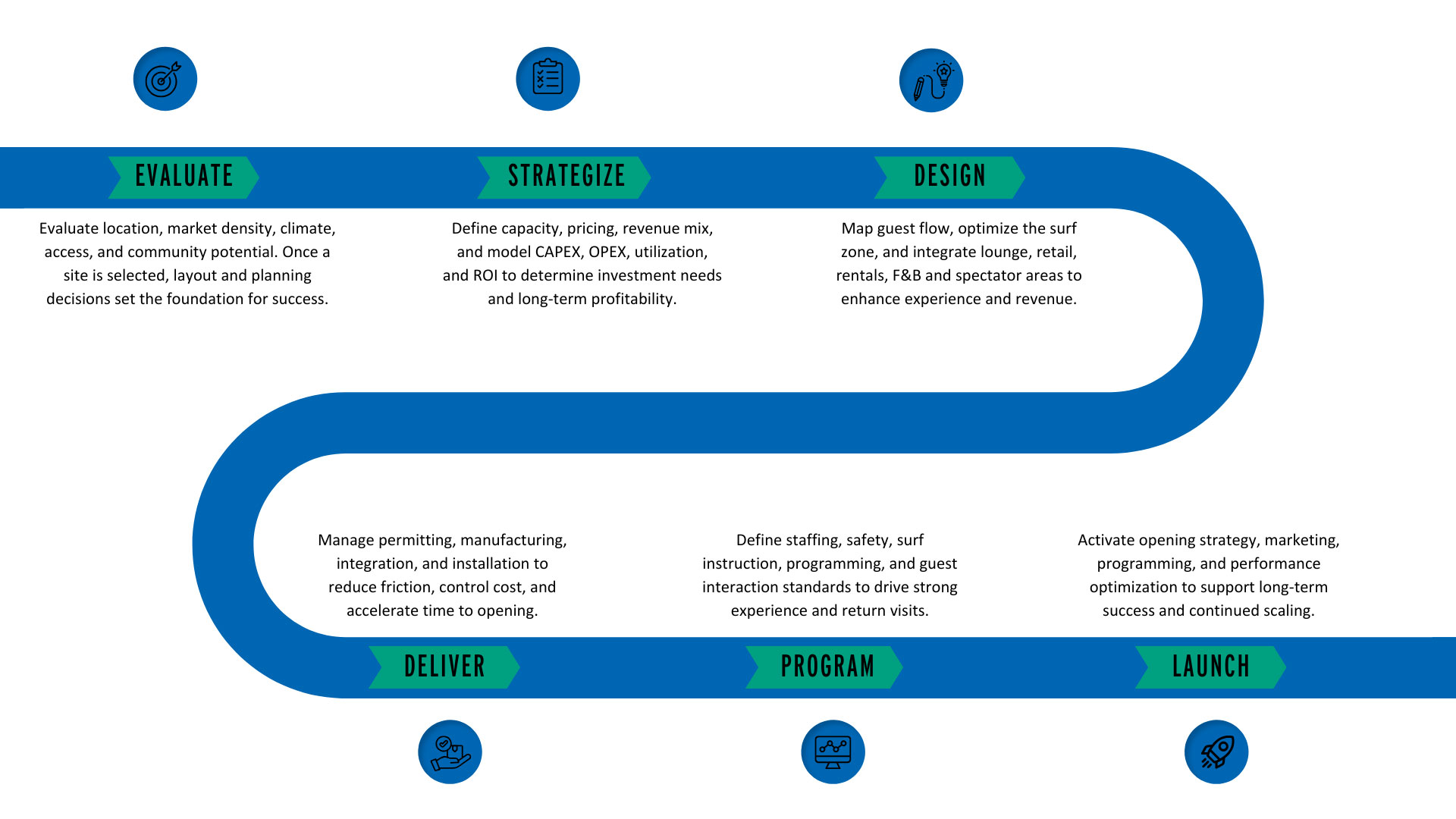 From day one, our team works alongside you through every stage of the journey. With proven expertise in both surf and destination development, we help navigate risk, identify scalable profit centers, and build a strategy that leads to successful operations — not just a ribbon cutting.